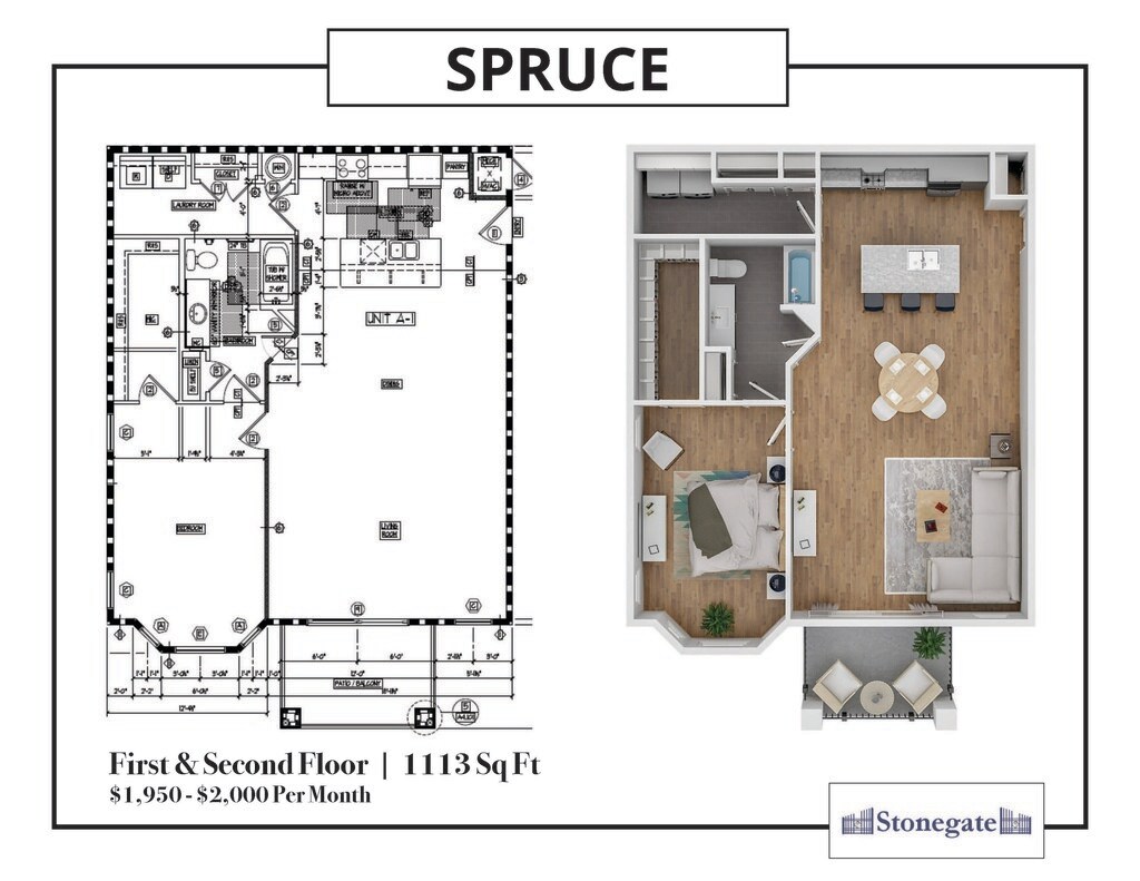 Price Availability Date Unit Sq Ft From $1,950 Call for Availability SPRUCE 1113 sq ft Model Amenities and Features