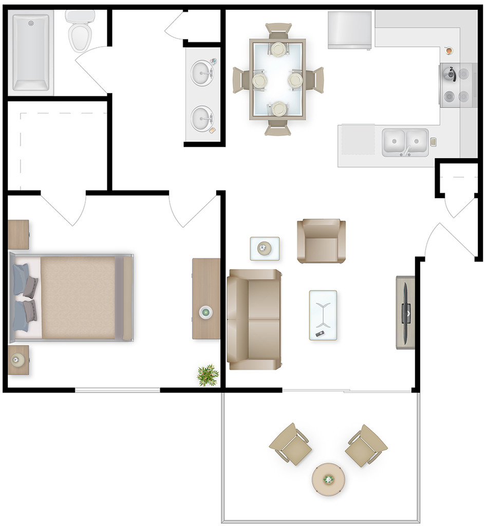 Studio, 1 Bath, 300 sq ftModel Gallery