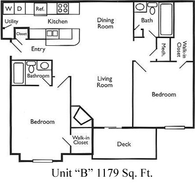 Apartment Model: Two Bedroom2 Bedroom, 2 Bath, 1179 sq ftUnavailableTwo Bedroom - Floorplan 1
