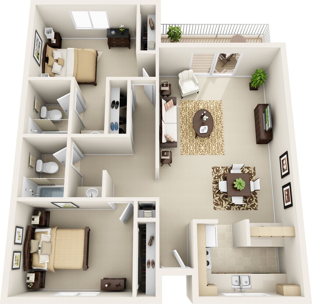 - 1–2 Bedrooms