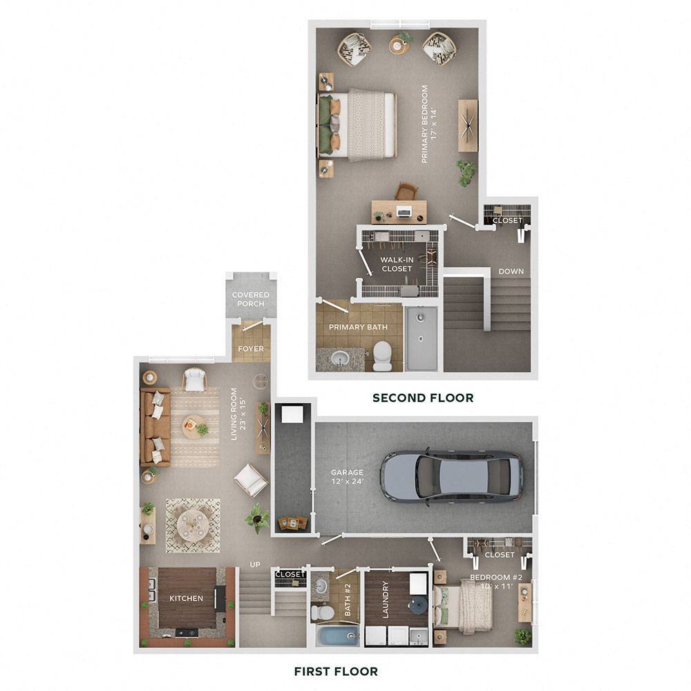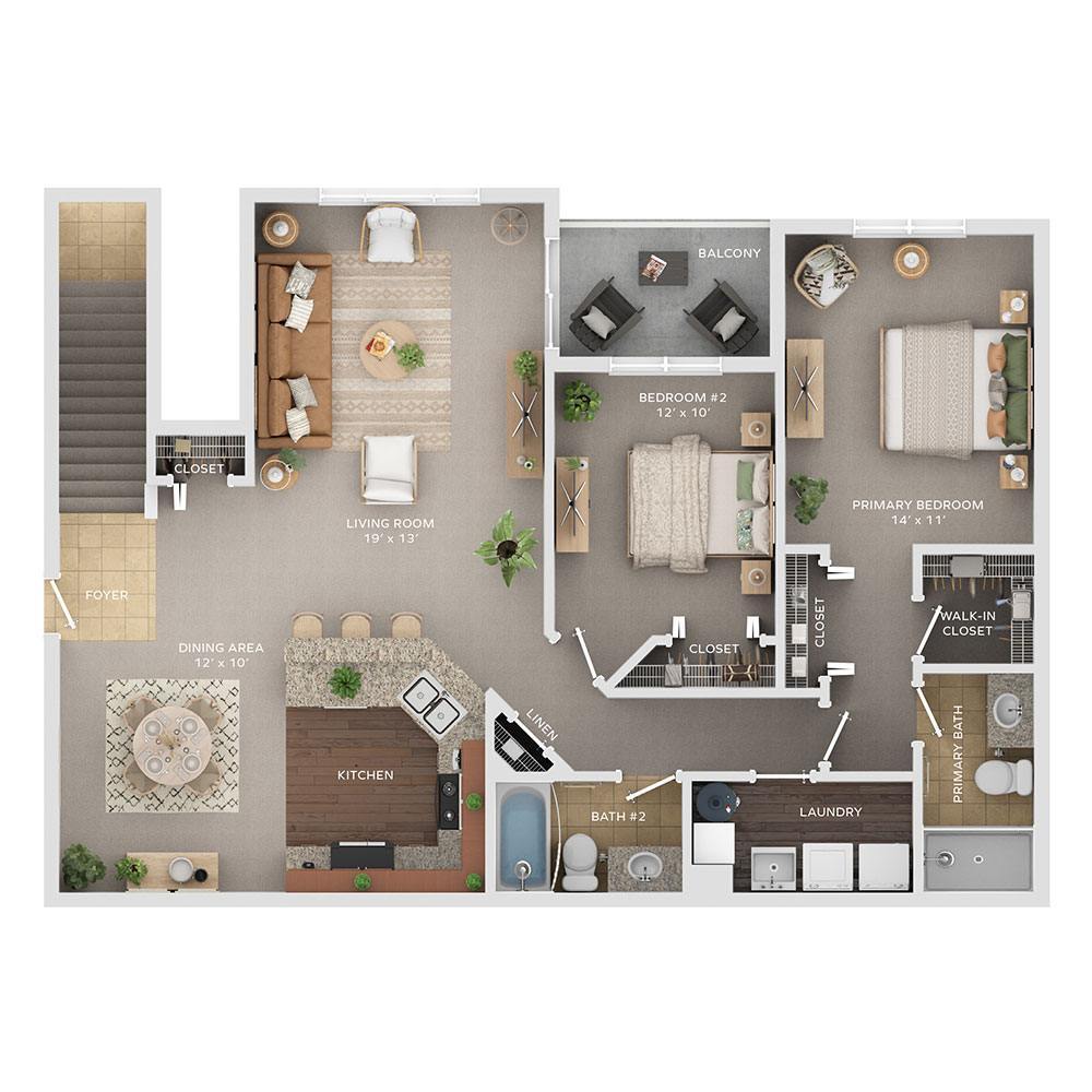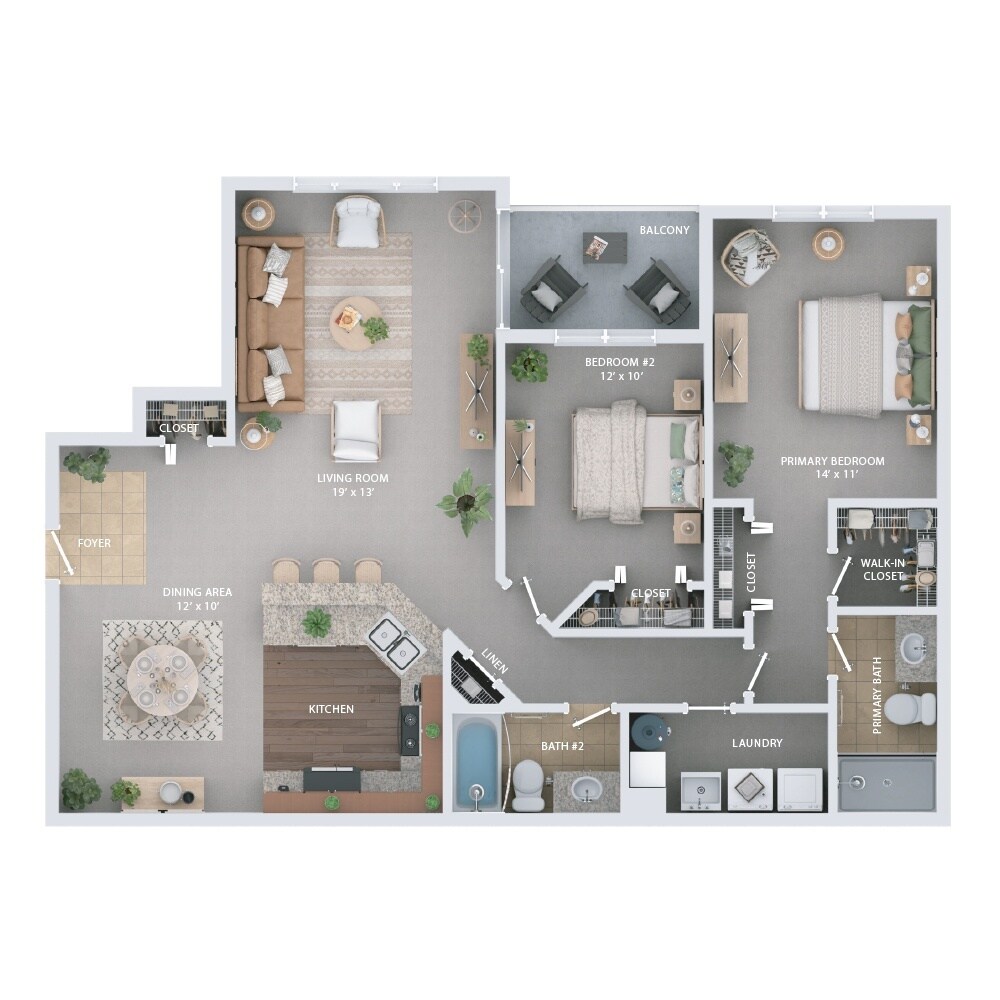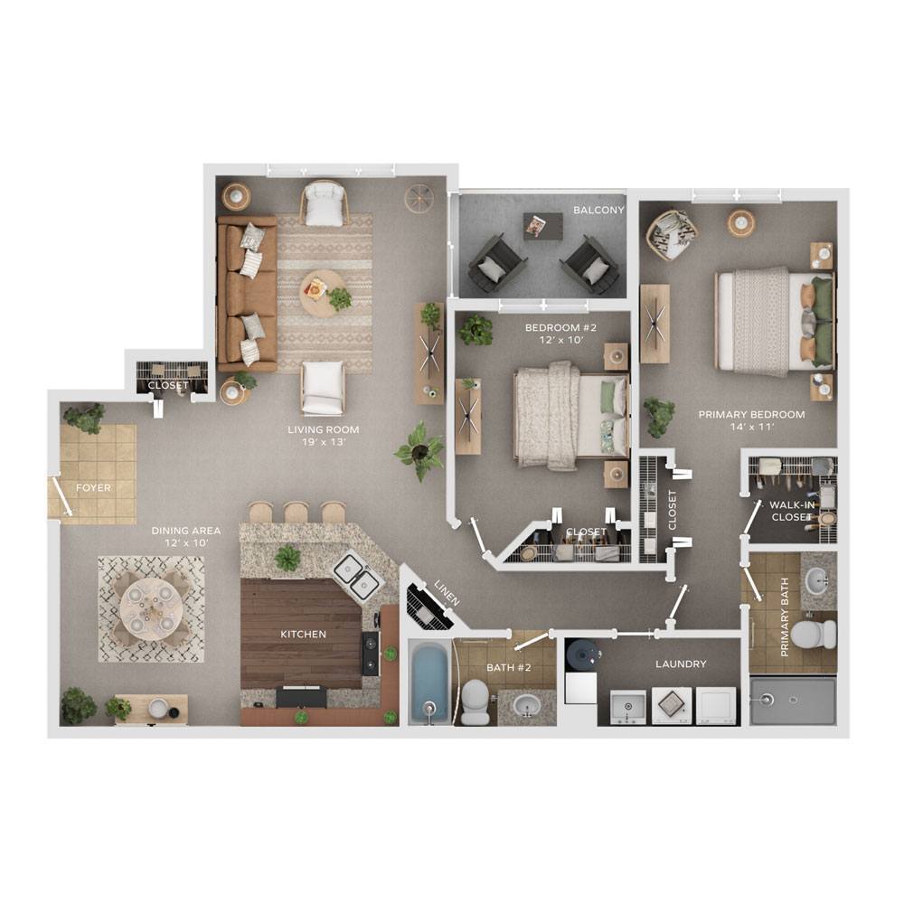 2 Beds, 2 Baths, 1395 sq ftAvailable SoonModel Gallery