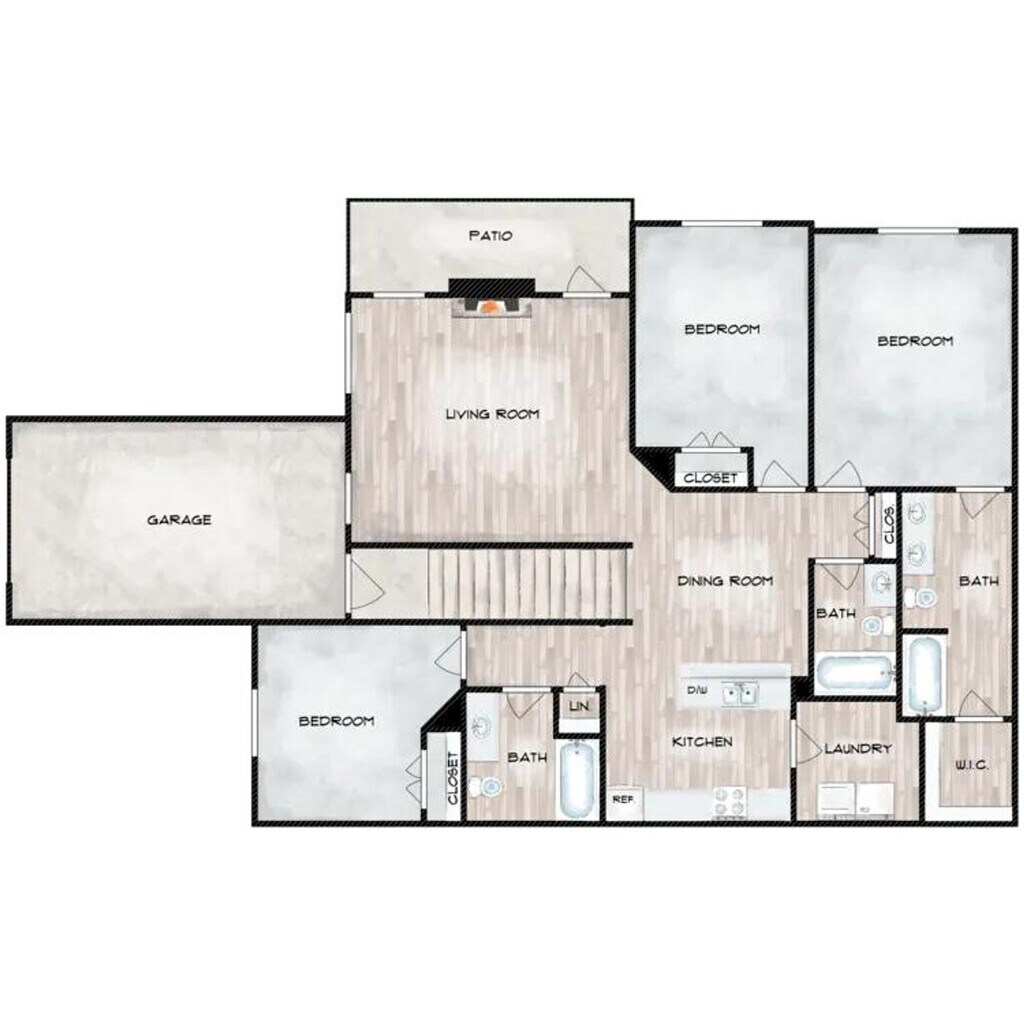 Apartment Model: The Emerald with Attached GarageFrom $2,6953 Bedroom, 3 Bath, 1375 sq ftAvailable December 7, 2025![]()