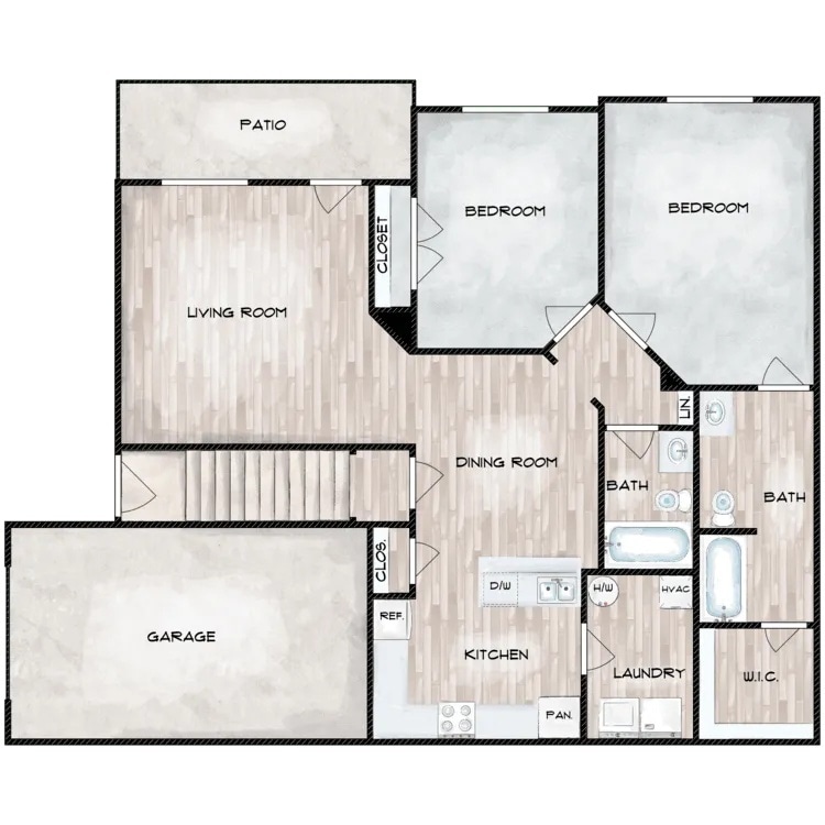 Apartment Model: The Ruby with Attached GarageFrom $2,2952 Bedroom, 2 Bath, 1081 sq ftAvailable Now![]()