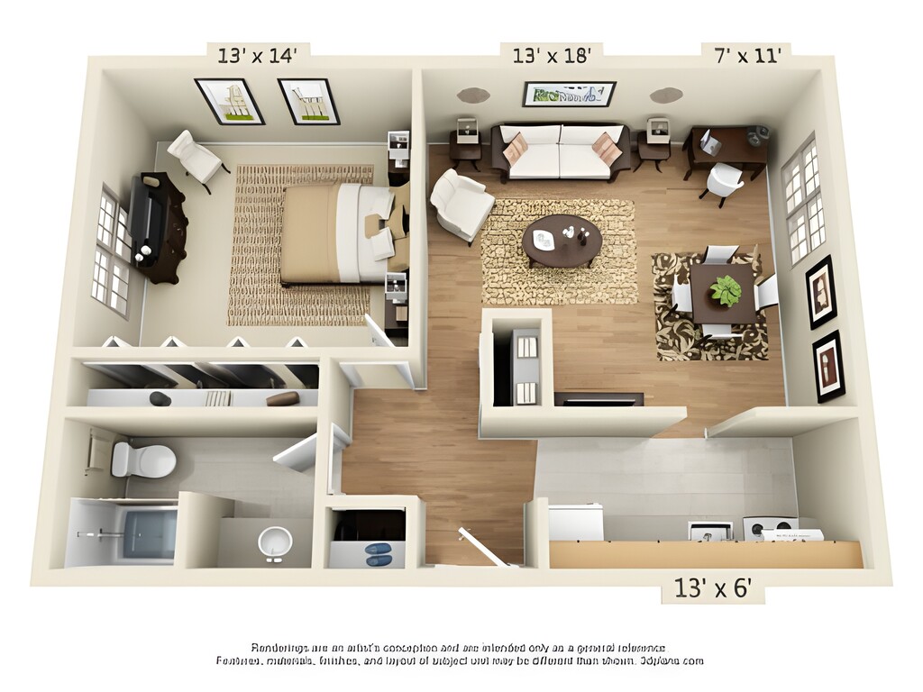 2 Beds, 1 Bath, 1000 sq ftAvailable NowModel Gallery