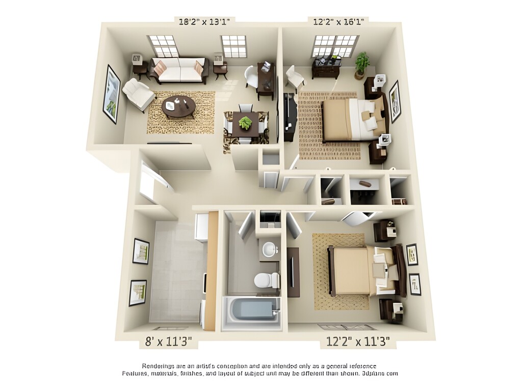 Apartment Model: 2 Bedroom, Style B$1,7552 Bedroom, 1 Bath, 860 sq ftAvailable Now![]()