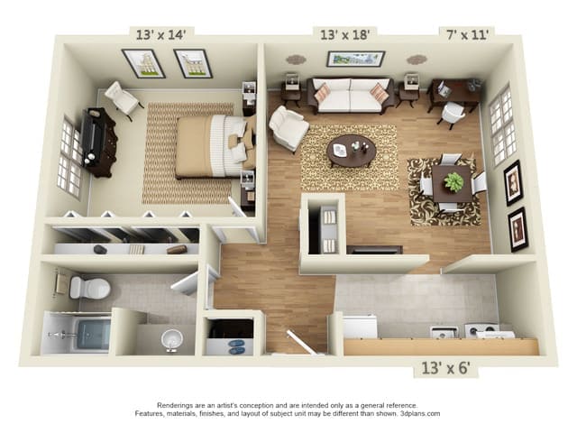 Studio, 1 Bath, 542 sq ftAvailable NowModel Gallery