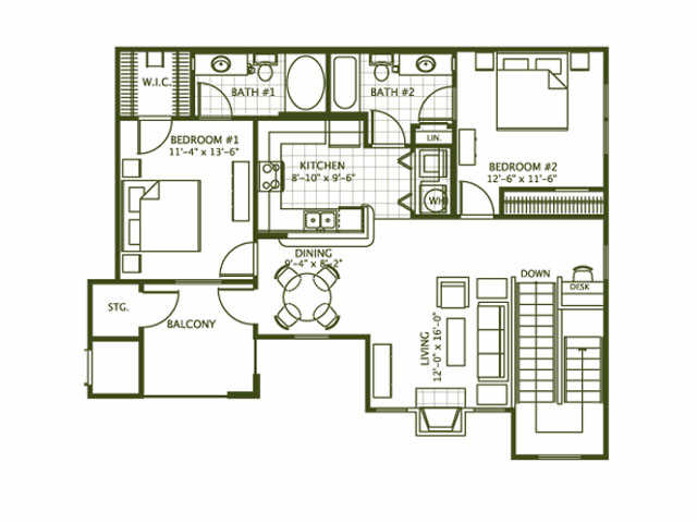 2 Beds, 2 Baths, 1132 sq ftLargest 2 BedroomThis is the largest 2 Bedroom at this PropertyModel Gallery