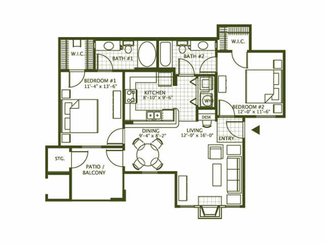 2 Beds, 2 Baths, 998 sq ftModel Gallery