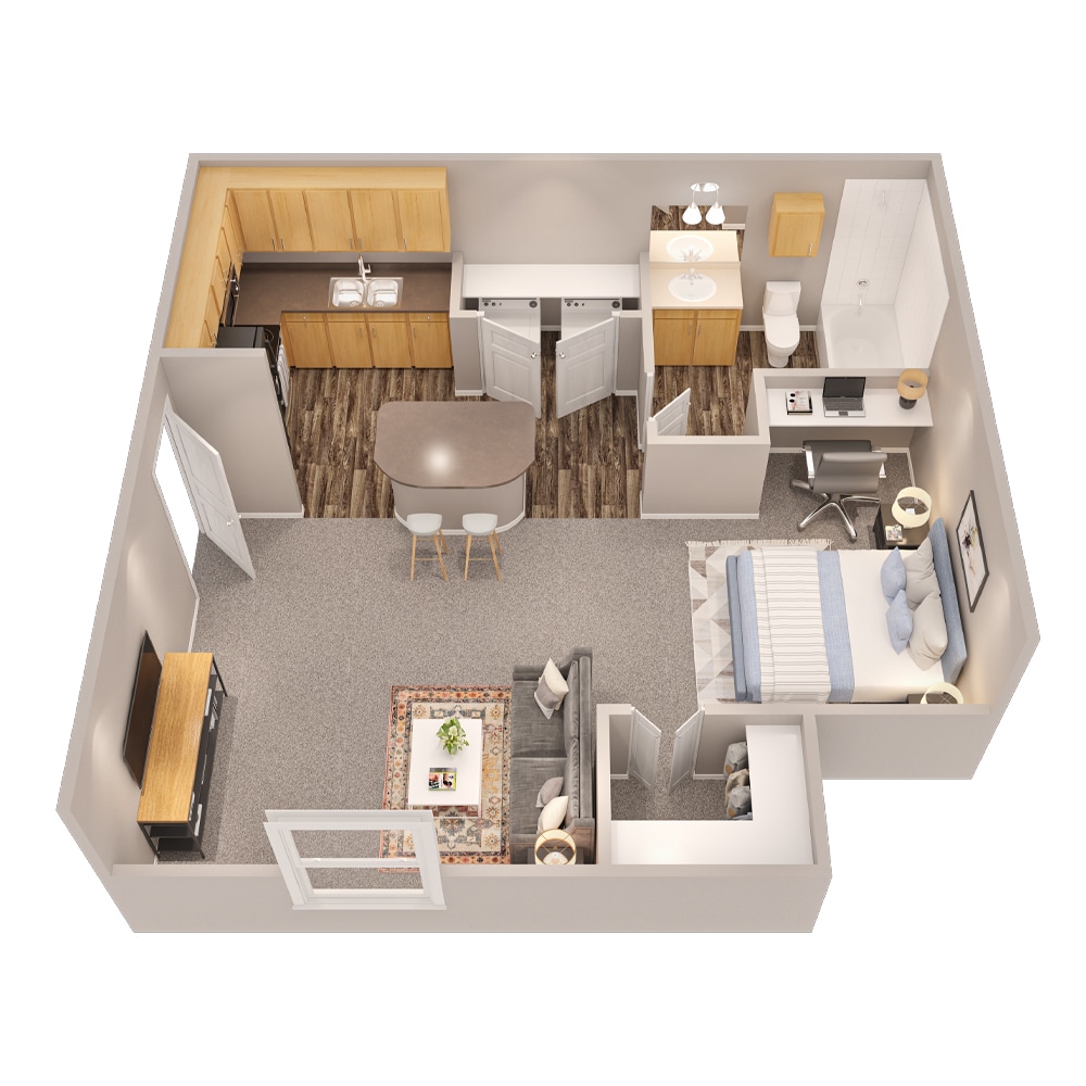 Studio, 1 Bath, 525 sq ftAvailable NowModel Gallery
