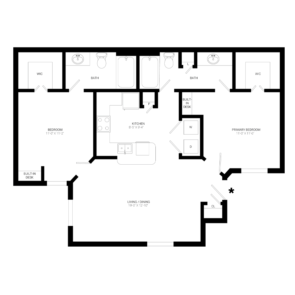1 Bed, 1 Bath, 625 sq ftAvailable NowModel Gallery