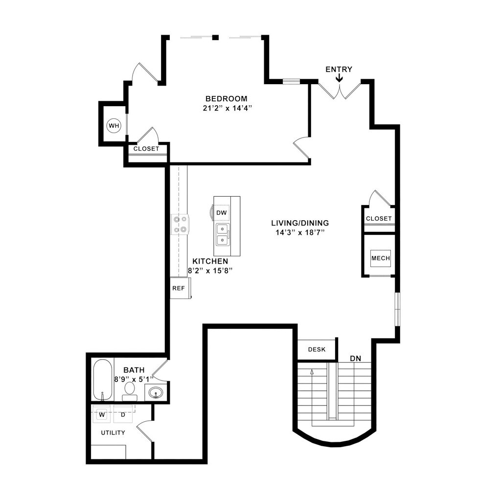 Studio, 1 Bath, 620 sq ftAvailable NowModel Gallery