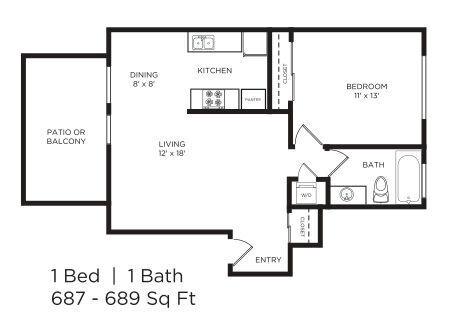1 Bed 1 Bath A - Floorplan 1 2 Bedrooms