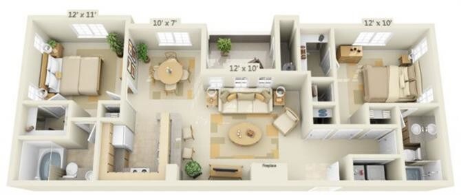 Apartment Model: Limestone2 Bedroom, 2 Bath, 1077 sq ftAvailable NowFloorplansPhotos![]()