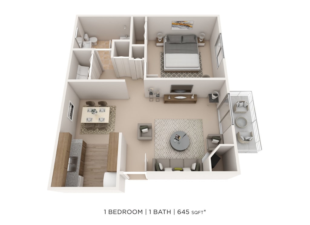 1 Bed, 1 Bath, 645-744 sq ftAvailable NowModel Gallery