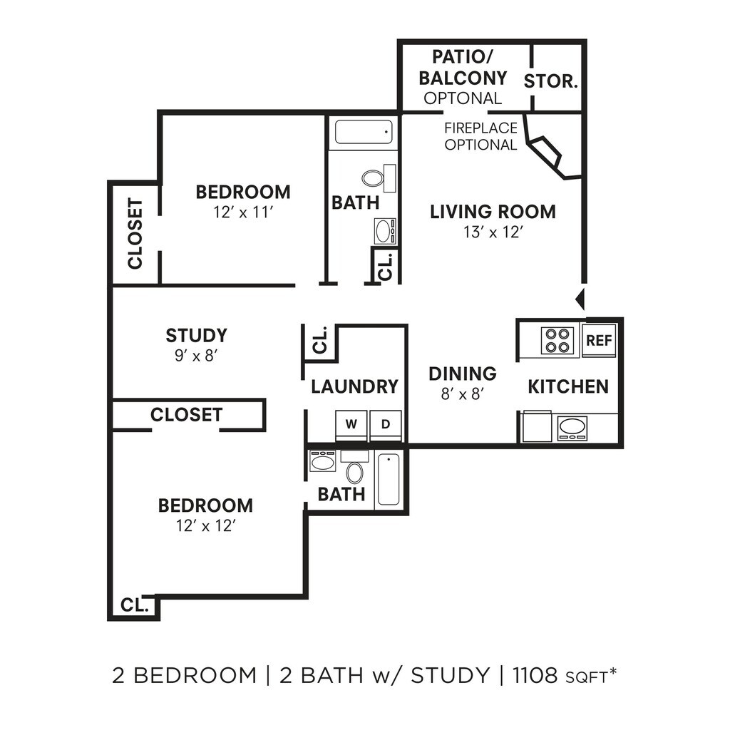 One Bed One Bath - Floorplan 1 2 Bedrooms
