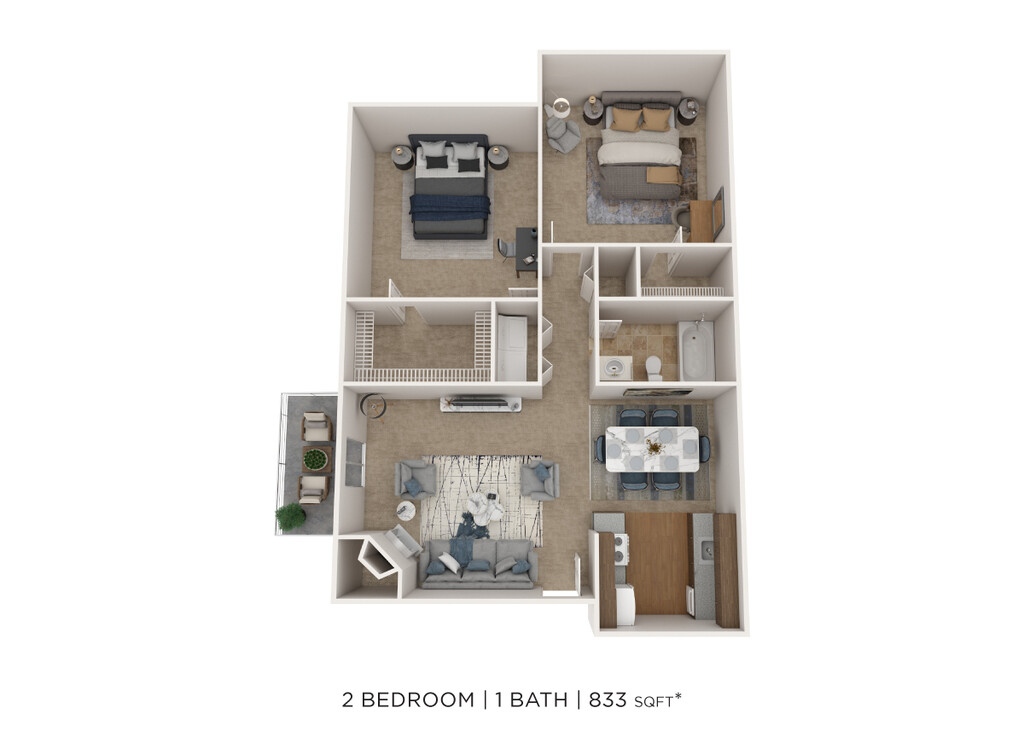 2 Beds, 2 Baths, 851 sq ftAvailable NowCheapest 2 BedroomThis is the cheapest 2 Bedroom at this PropertyModel Gallery
