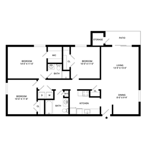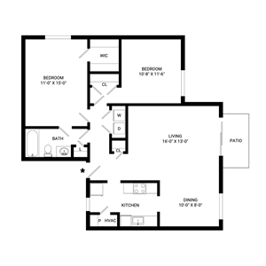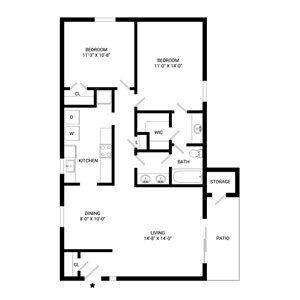 2 Beds, 1 Bath, 973 sq ftAvailable NowModel Gallery