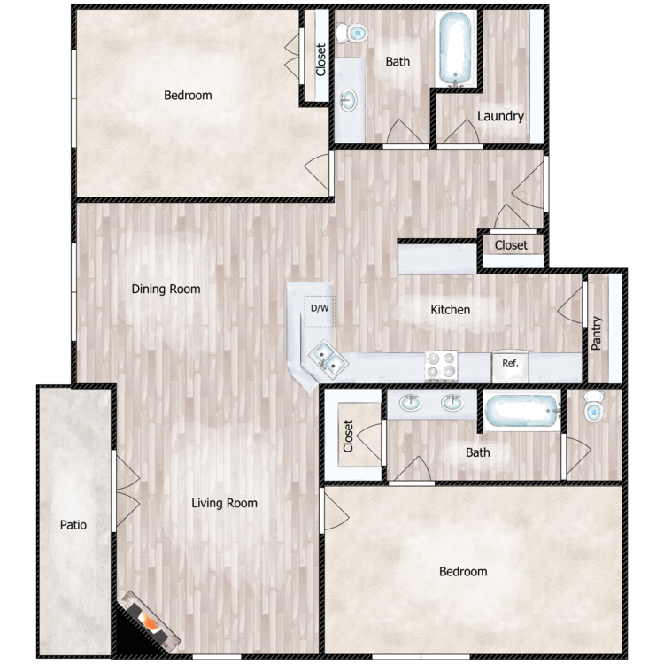 2 Beds, 2 Baths, 1500 sq ftAvailable NowModel Gallery