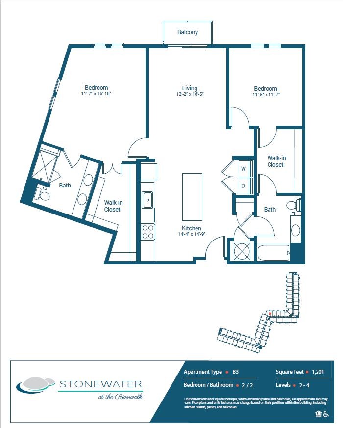 Studio to 3 Bedroom Apartments at Stonewater at the Riverwalk currently range from $1,285 to $1,940