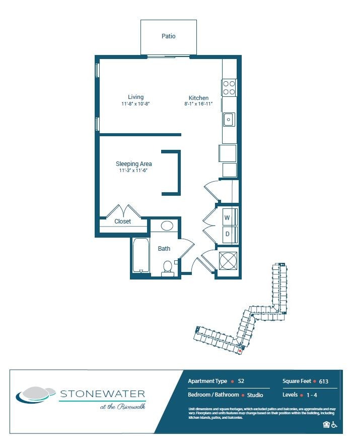 Stonewater at Riverwalk features open and spacious floor plans and unrivaled amenities, featuring Fire Pits, Lounge Areas, Grilling Station and Saltwater Pool w/ Large Wet Deck, Coffee Lounge, Conference Room, Fireplace Lounge, Pet Spa, Community Demonstration Kitchen, Bike Repair & Storage, Gaming & Maker's Space, 24-Hour Fitness Center w/ Fitness onDemand® , and guest suite. Spacious floor plans include studio, one and two-bedroom homes, featuring Granite Kitchen Countertops, Cultured Marble Vanity Tops w/ Integral Sinks Tile Backslashes in Kitchen Stainless Steel Appliances, Washer & Dryer Included, Under-mount Faucets and Sinks, LED Lighting in Entries, Kitchen, Bathrooms and Closets.