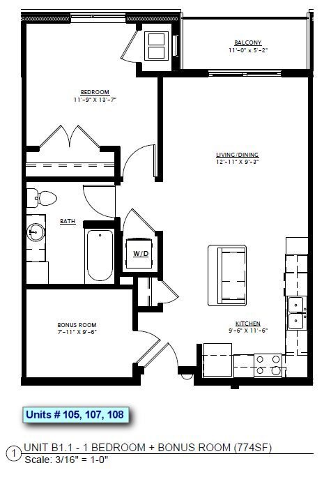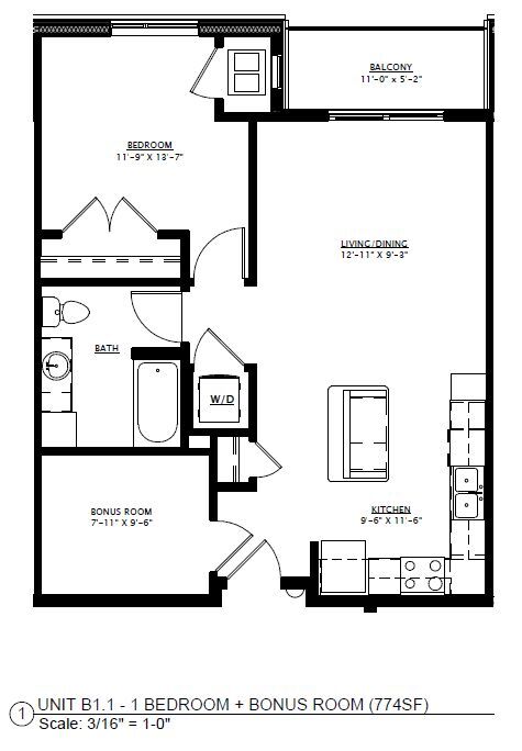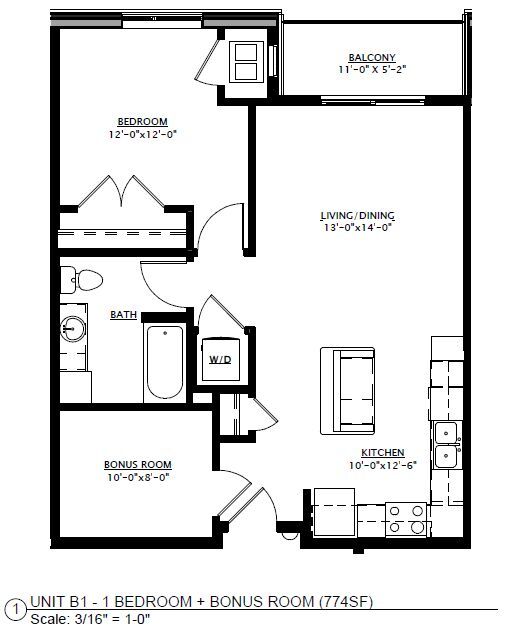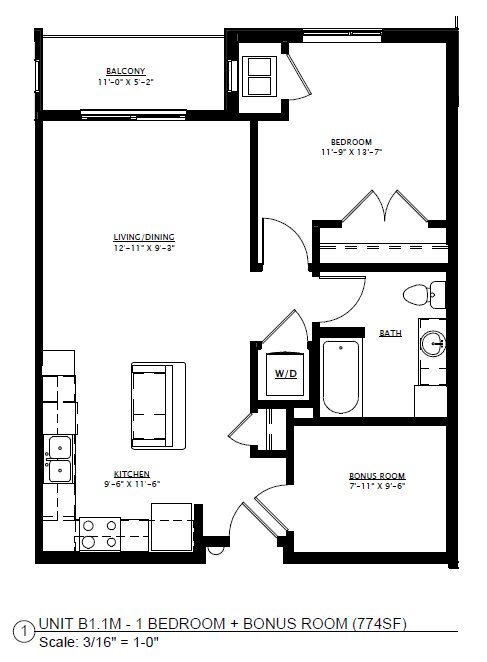 Apartment Model: B1.1From $1,4501 Bedroom, 1 Bath, 774 sq ftAvailable NowB1.1 - Floorplan 1 2 Bedrooms