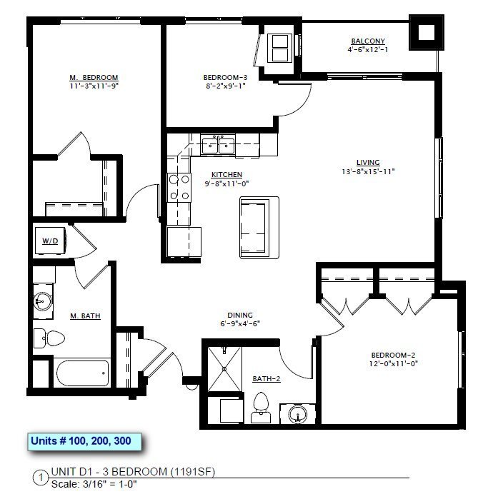 Apartment Model: D1 #100 #200 #300From $1,8002 Bedroom, 2 Bath, 1160-1291 sq ftAvailable NowD1 #100 #200 #300 - Floorplan 1 E11207