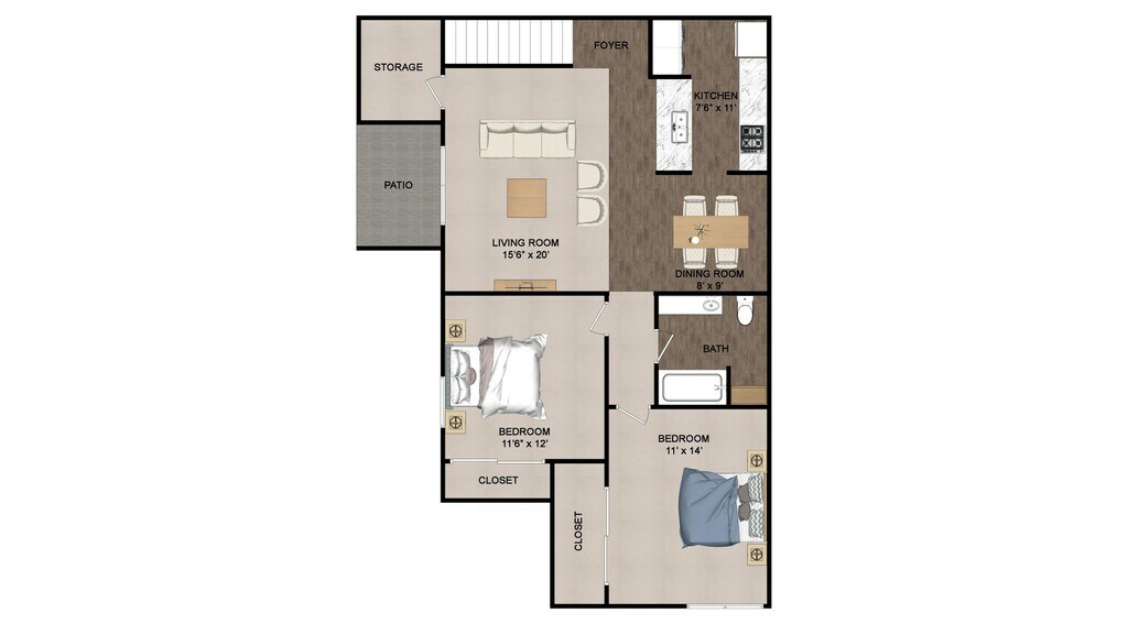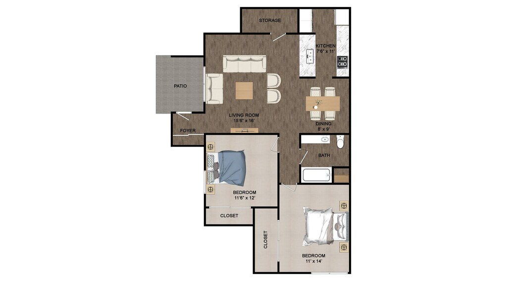 2 Beds, 1 Bath, 1000 sq ftAvailable NowModel Gallery