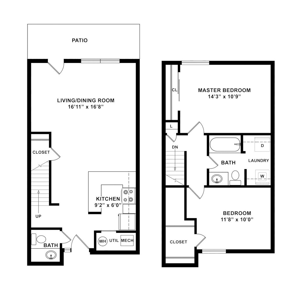 2 Beds, 1.5 Baths, 1100 sq ftAvailable NowModel Gallery