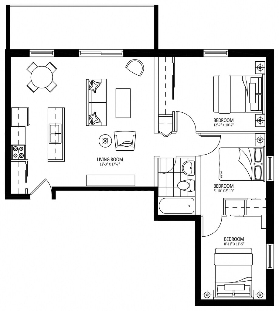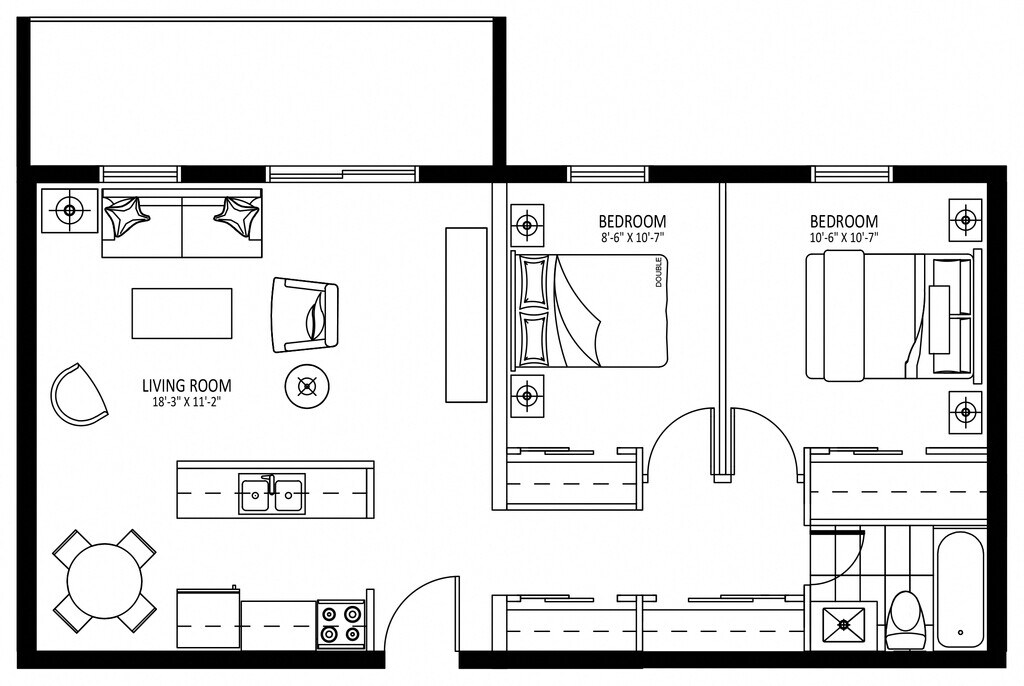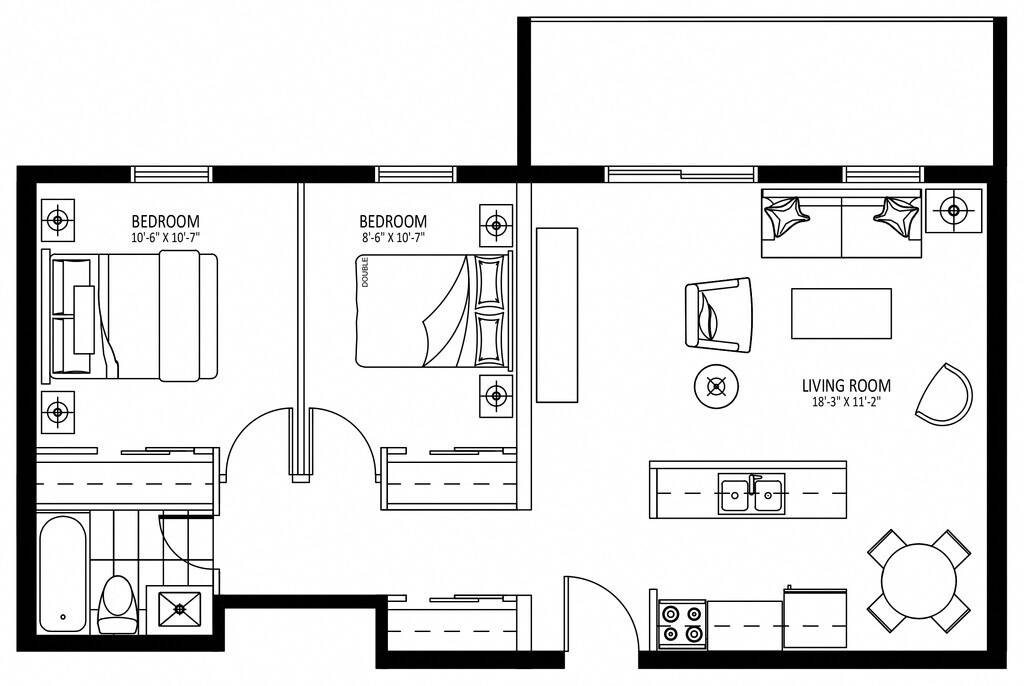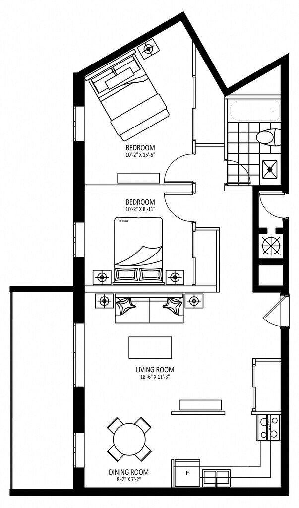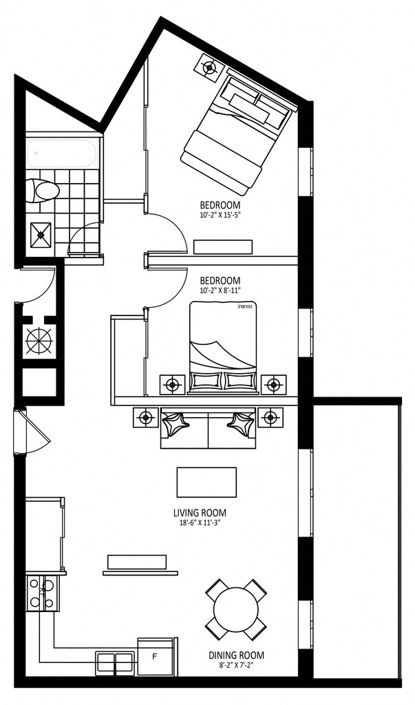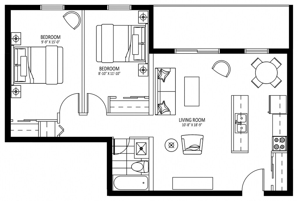 Apartment Model: 2 Bedroom Promotional Price For First 8 Months*$1,5992 Bedroom, 1 Bath, sq ftAvailable Now![]()