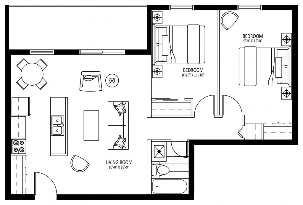 2 Beds, 1 Bath, 900 sq ftAvailable NowModel Gallery