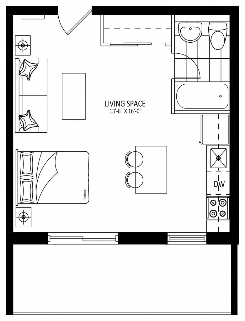 Studio, 1 Bath, 400 sq ftAvailable NowModel Gallery