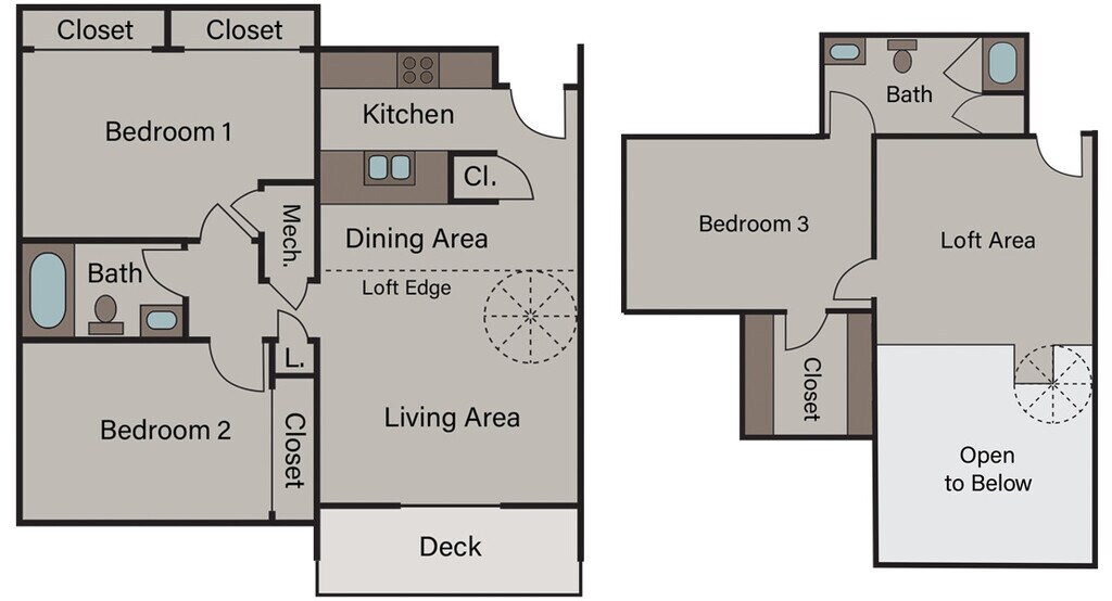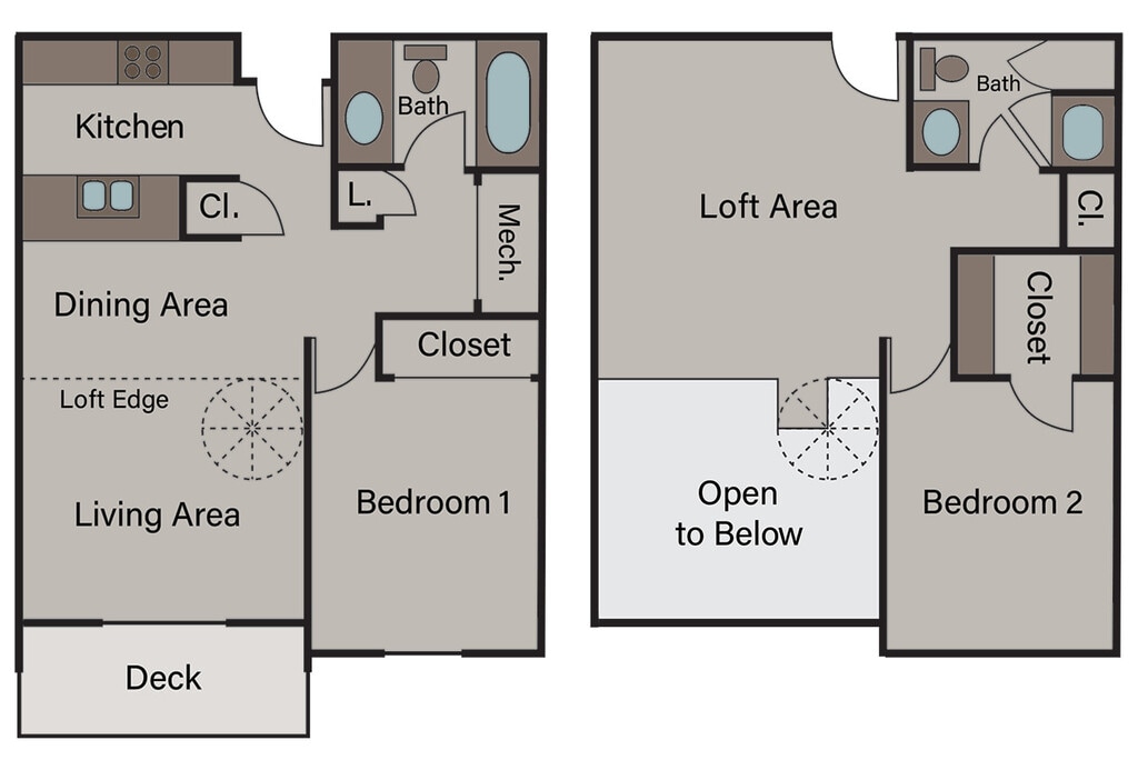 1 BR Loft - Floorplan 12 2 Bedrooms