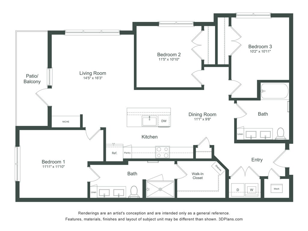 Unit: 1102 - Floorplan 1 Apartment Unit: 1201Apartment Model: The Waylon | 2 Bed | 2 Bath$1,9002 Bedroom, 2 Bath, 1053 sq ftAvailable Now3 Bedrooms
