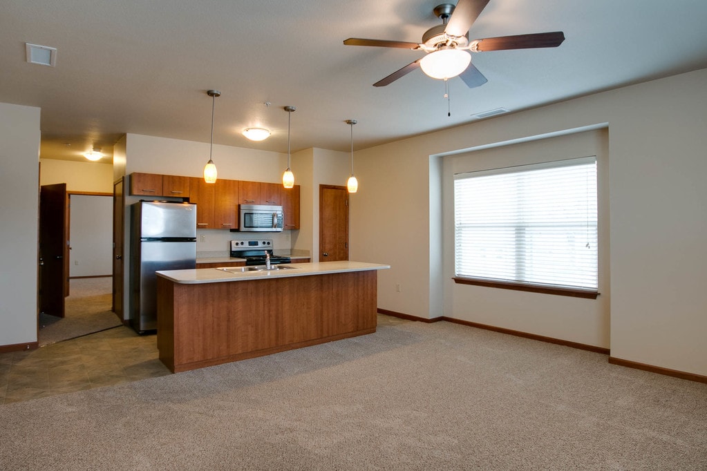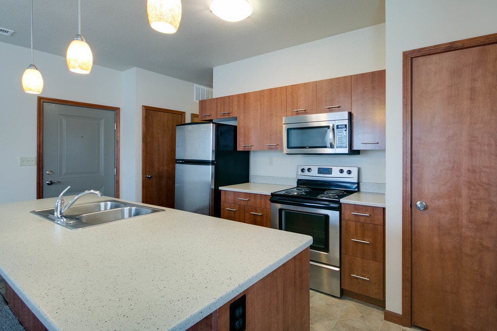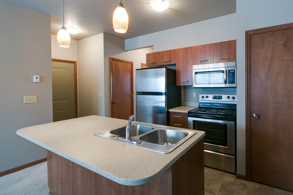 Located on N. 4th Street in the revitalized downtown area, Strasser Landing is within walking distance of neighborhood dining, shopping and entertainment offered downtown, including at Manhattan Town Center and the Manhattan Market Place district. Featuring one and two bedroom apartments, Strasser Landing offers a greener way to live. Reduce your environmental footprint and improve your health with a Walk Score () for Strasser Landing rated at 88, which means many of life's amenities are near enough to walk. Indoor bicycle storage in many units, Energy Star certified appliances and on-site recycling all contribute to your choice of a greener lifestyle. Amenities in Strasser Landing's spacious homes include kitchens with stainless appliances and upscale finishes, full size washers and dryers and generous storage space. Also offered is the fully renovated, historic limestone Strasser House. Situated in the heart of the Strasser Landing Apartment Community, residents are within walking distance to many of life's amenities such as neighborhood dining, shopping and entertainment. Residents will find themselves in an active and social atmosphere. Each one bedroom apartment includes stainless steel appliances, custom cabinetry, porcelain tile, full-size washer and dryer, and a walk-in closet. Come experience contemporary styling with a touch of old world charm.