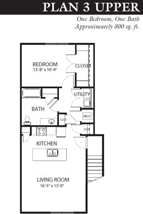 Apartment Model: 1 Bed 1 Bath Plan 31 Bedroom, 1 Bath, 800 sq ftUnavailableFloorplansPhotos![]()