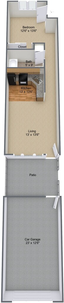 - Attached Oversize Singe Car Garage