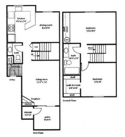 2 Bed / 1.5 Bath Town House - Floorplan 1 2 Bed / 2 Bath