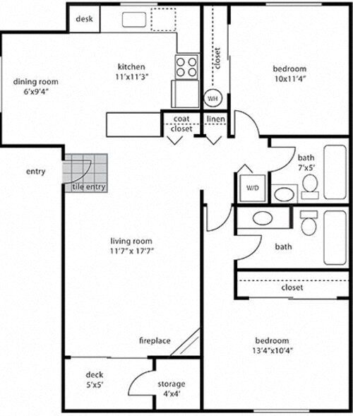 2 Bed / 2 Bath - Floorplan 1