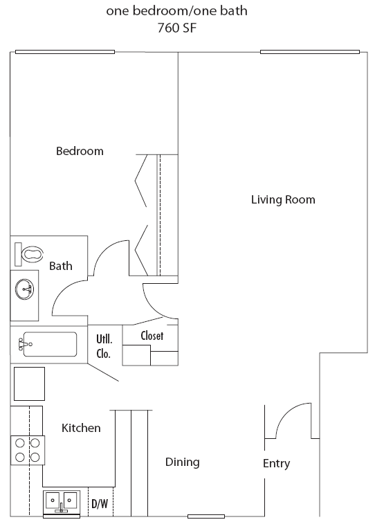 1 Bed, 1 bath - Floorplan 1 2 Bedrooms