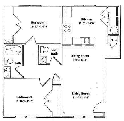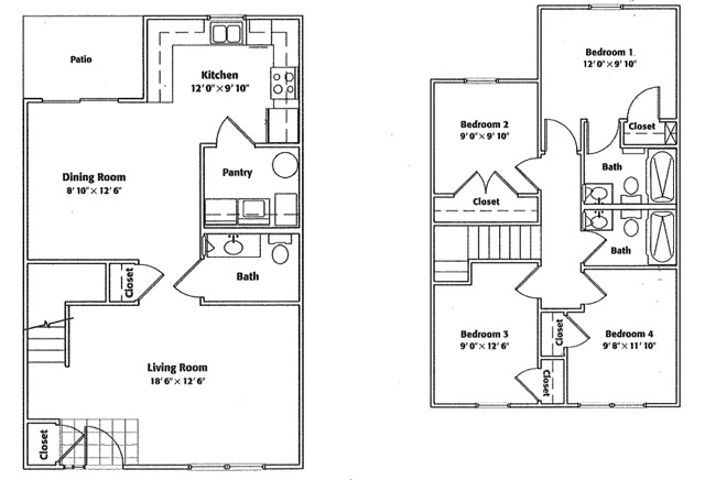 Apartment Model: 3x1.5 TH3 Bedroom, 1.5 Bath, 1194 sq ftUnavailable3x1.5 TH - Floorplan 1 4 Bedrooms