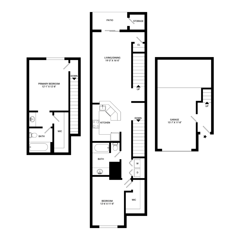 Essex - Image 1 Floor plans are artist's rendering. All dimensions are approximate. Actual product and specifications may vary in dimension or detail. Not all features are available in every rental home. Please see a representative for details.