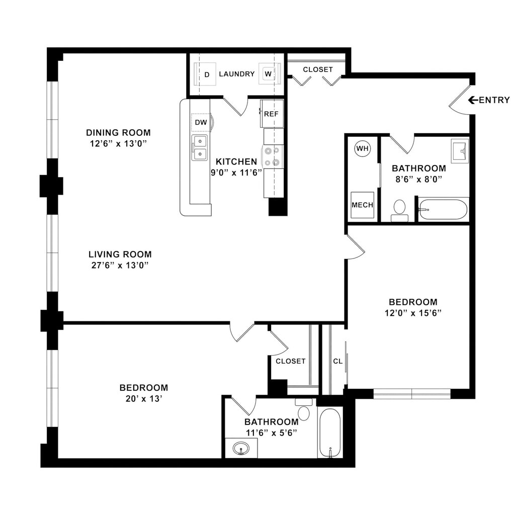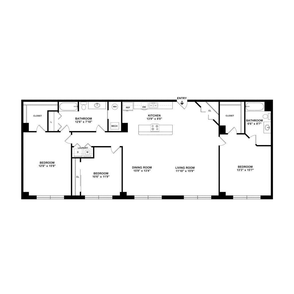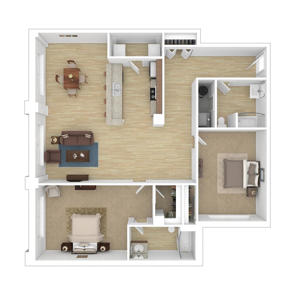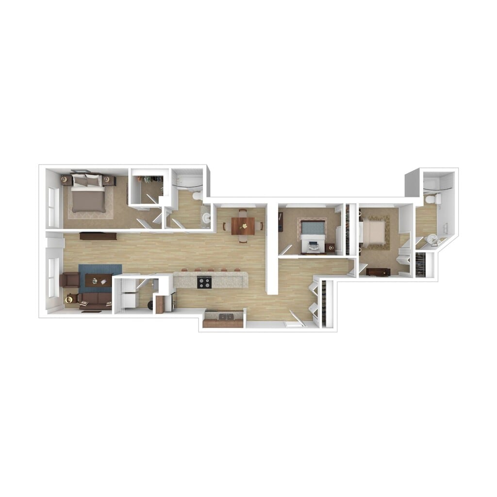 Apartment Model: 3eFrom $1,6993 Bedroom, 2 Bath, 1636 sq ftUnavailable![]()