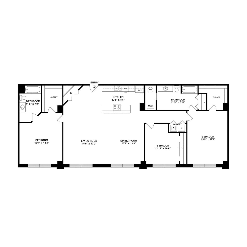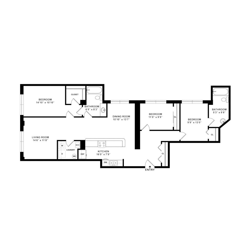 3 Beds, 2 Baths, 1780 sq ftAvailable Dec 23Largest 3 BedroomThis is the largest 3 Bedroom at this PropertyModel Gallery