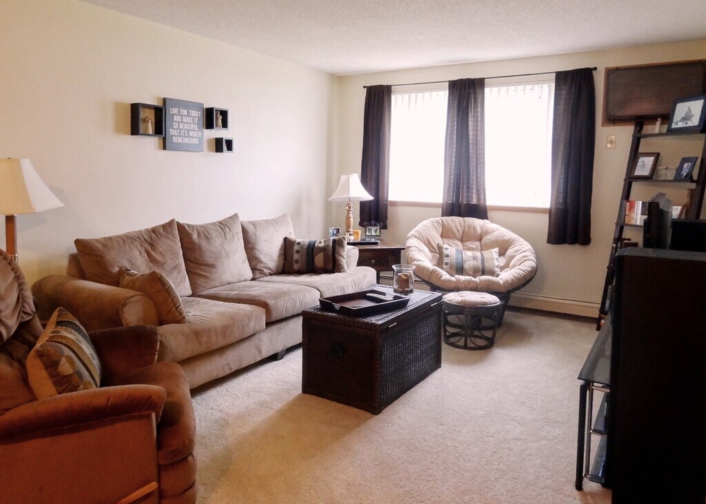 Your friends will be green with envy after you move to your Stratford Square apartment home. Located only minutes from the Crossroads Shopping Mall, Hwy 15, Heritage Park, Stearns County History Museum, Boulder Ridge Golf Club, and Quarry Park Nature Preserve, there is no better place to call home. Stratford Square is also located on the bus line, offering easy access to various locations in St. Cloud, surrounding cities, and St. Cloud State University. Comprised of 1 one-bedroom, 19 two-bedroom, and 1 three-bedroom apartment homes with open kitchens, walk-in closets, dishwashers, air conditioning, and FREE Wi-Fi, Stratford Square will be a great place to make your home. 12-month lease | $400 security deposit | $55 application fee/adult | $200 administrative fee due at lease signing | Laundry $20/month for one leaseholder, $25/month for two leaseholders | Heat, trash, recycling included in rent | Electricity and water paid by resident