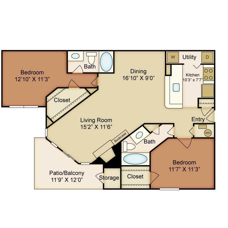 1 Bed, 1 Bath, 855 sq ftAvailable NowLargest 1 BedroomThis is the largest 1 Bedroom at this PropertyModel Gallery