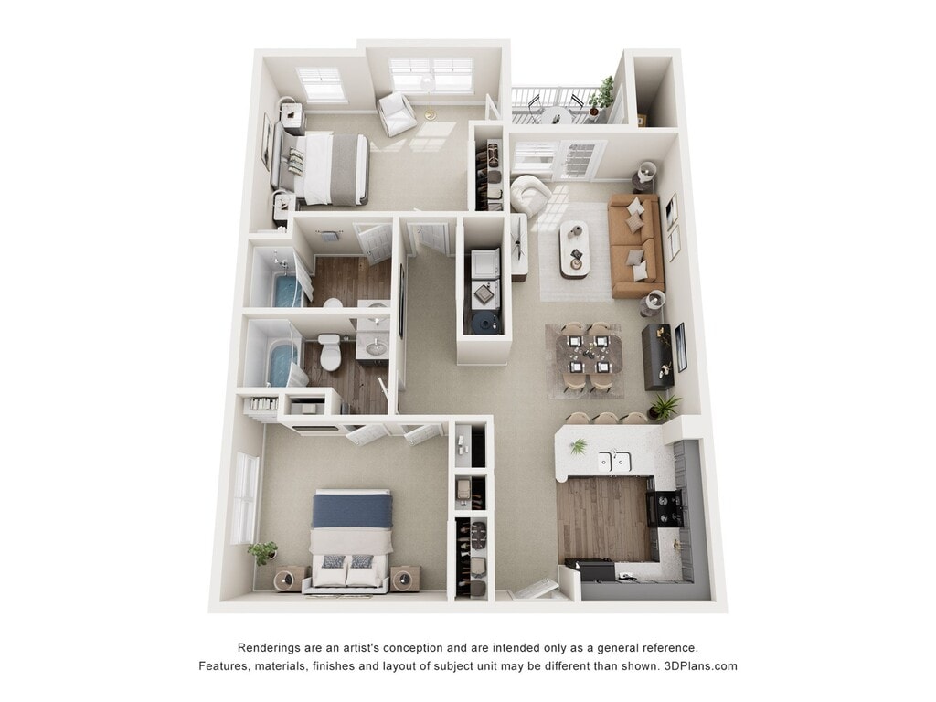Apartment Model: Pinehurst2 Bedroom, 2 Bath, 1120 sq ftAvailable February 23, 2026Floor plans are artist's rendering. All dimensions are approximate. Actual product and specifications may vary in dimension or detail. Not all features are available in every rental home. Please see a representative for details.
