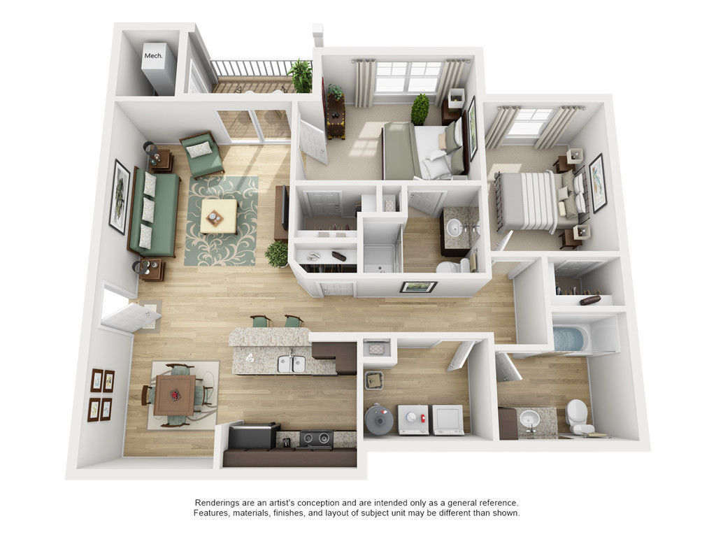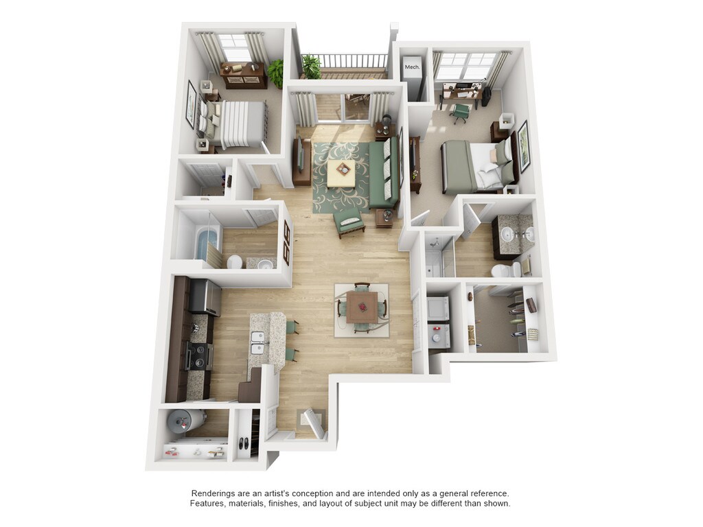 2 Beds, 2 Baths, 1076 sq ftAvailable May 6, 2026Model Gallery