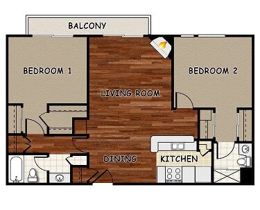 2 Beds, 2 Baths, 950 sq ftAvailable NowLargest 2 BedroomThis is the largest 2 Bedroom at this PropertyModel Gallery