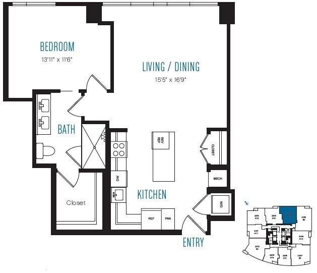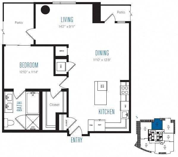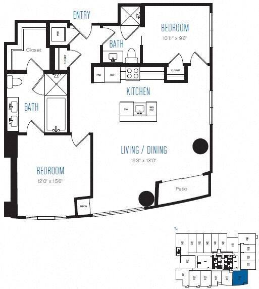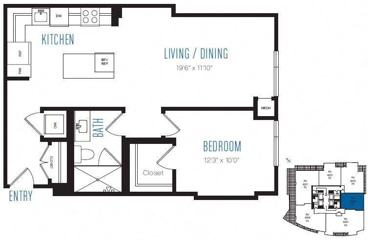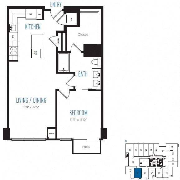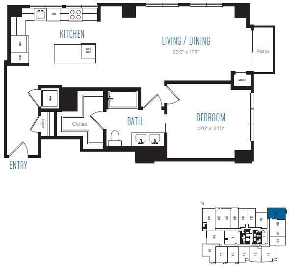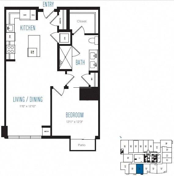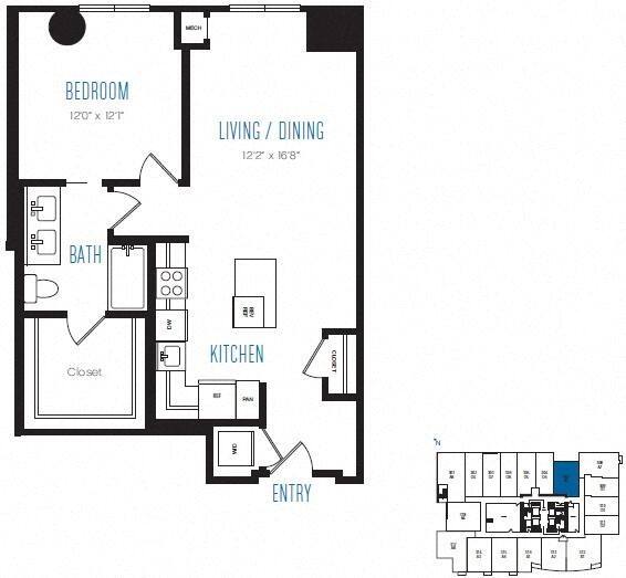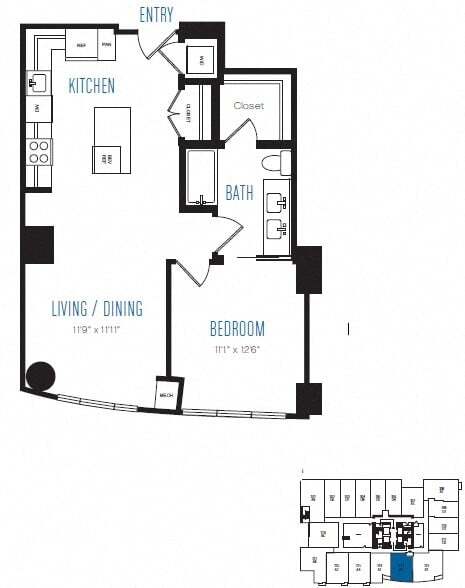 A10 - Floorplan 1 Apartment Unit: 3209Apartment Model: A10$3,0481 Bedroom, 1 Bath, 679 sq ftAvailable NowFloorplan A12