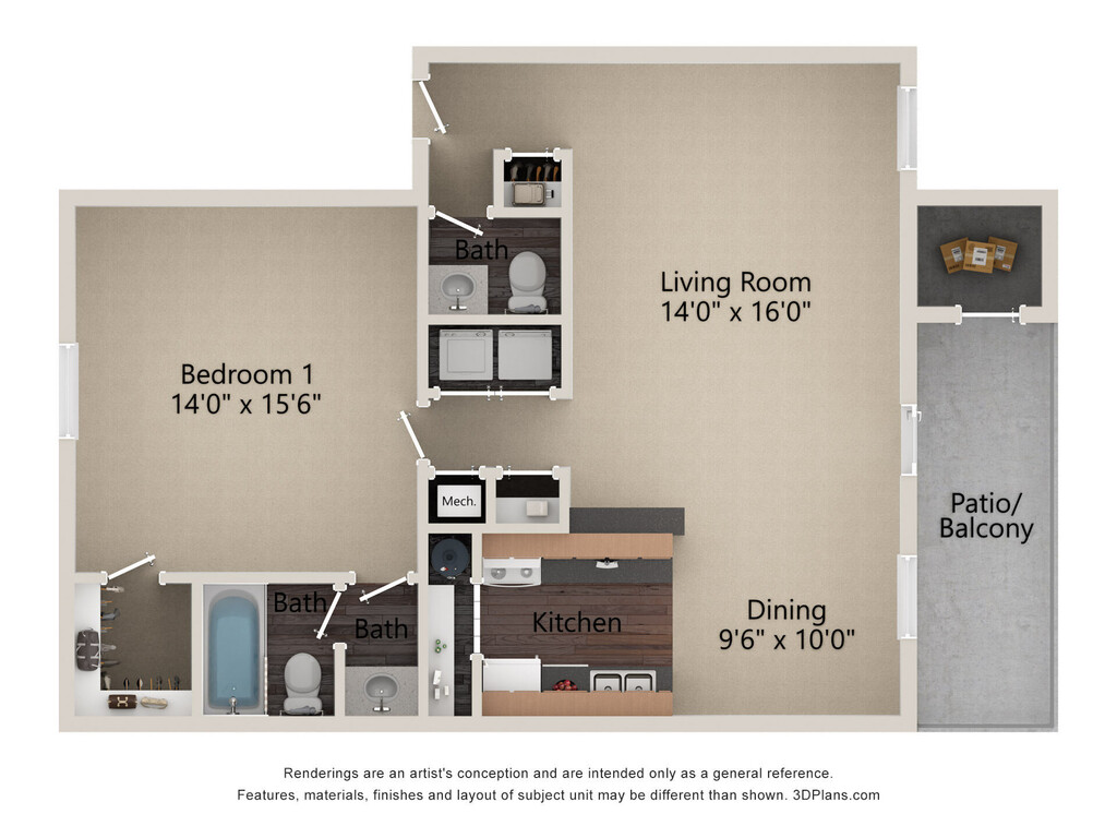 1 Bed, 1.5 Baths, 924 sq ftAvailable NowModel Gallery